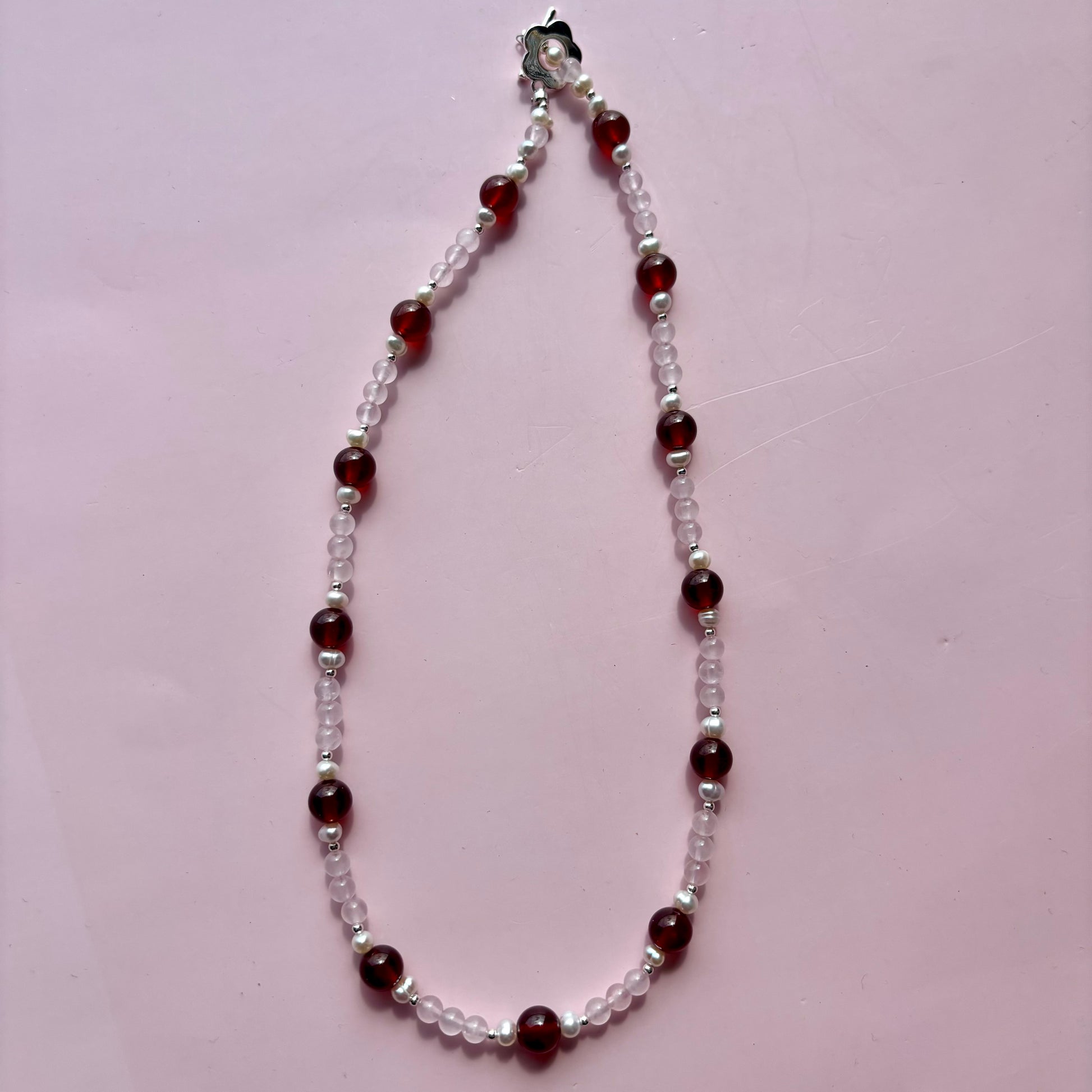 GARNET + ROSE QUARTZ + PEARL NECKLACE